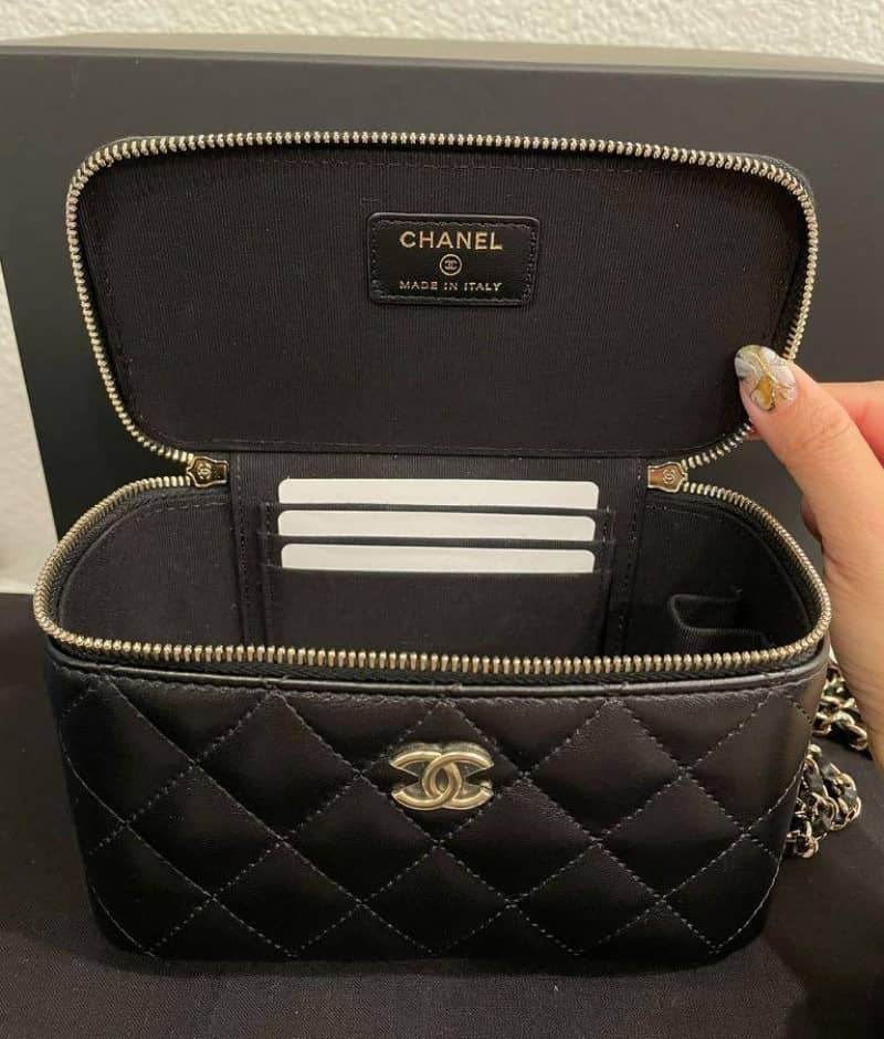 シャネル:チェーン付きスモールバニティバッグキルティングラムスキンオリジナルボックス、ダストバッグ、シリアルステッカー、オーセンティシティカード製品仕様11 x 8.5 x 7cm(幅 x 高さ x マチ)